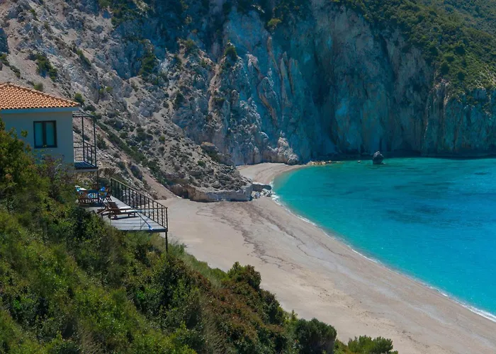 Overlooking the sea, the Agios Nikitas accommodation welcomes its guests.